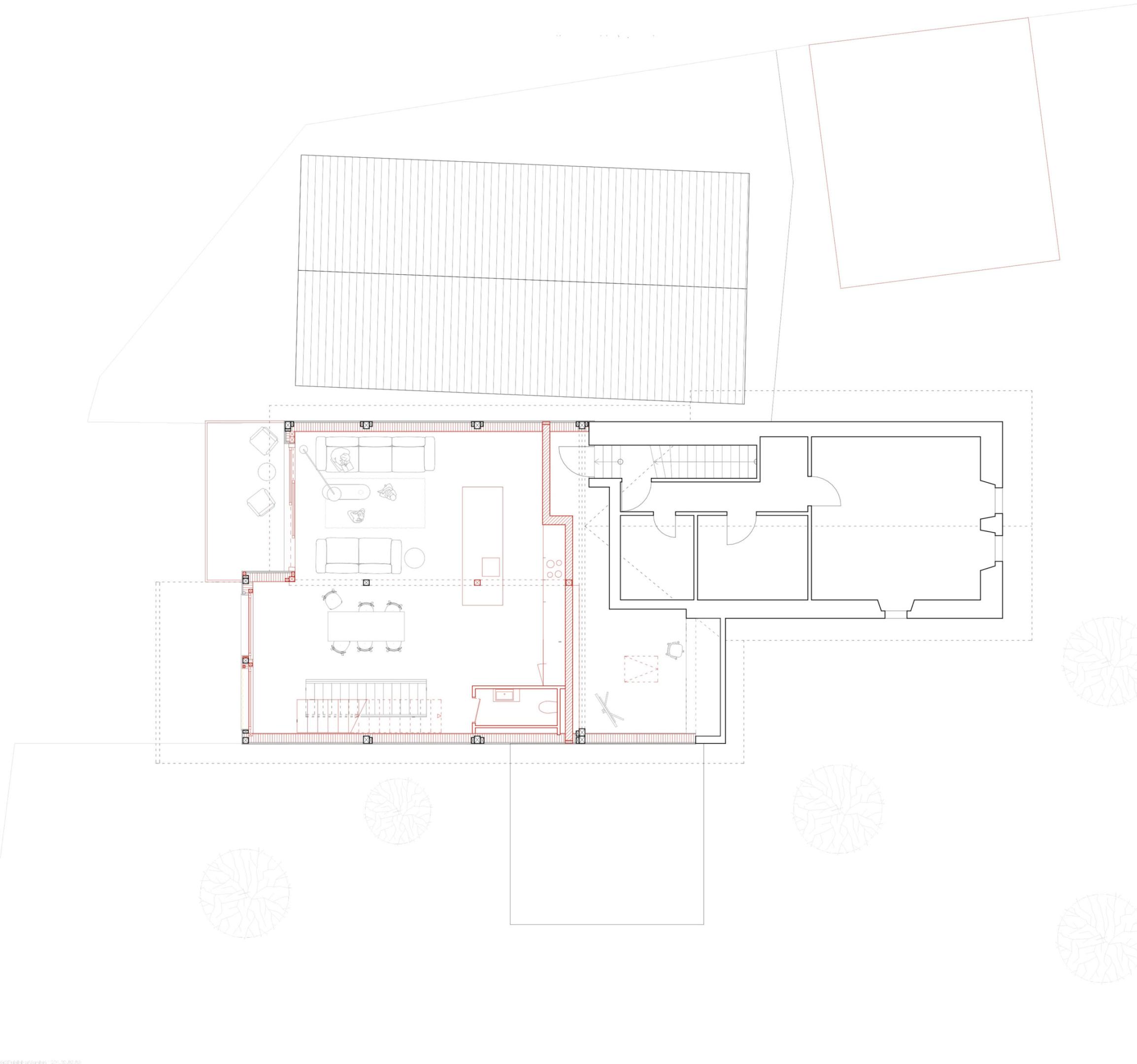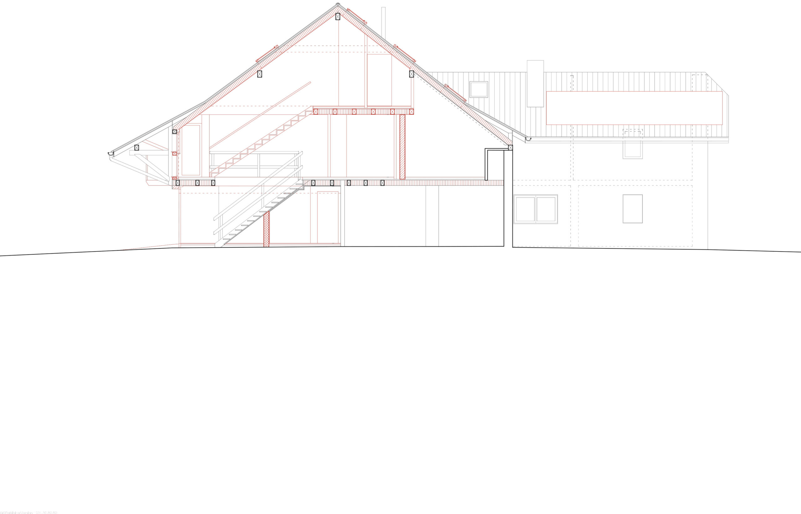 Transformation d’une grange en un nouveau logement, aménagé au sein d’une construction déjà existante. Le rez-de-chaussée abritant actuellement un garage est réaménagé et devient l’accès à ce nouveau logement. Les pièces de vie et de nuit se situent dans la grange actuellement inoccupée située à l’étage de la construction. Cette grange bénéficiant d’une très haute hauteur sous plafond permet la création d’un étage supplémentaire qui abrite les chambres. Direction de travaux uniquement.